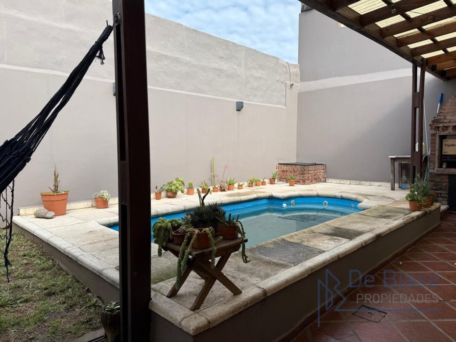 Construida sobre lote de 10x 20 consta de: Living , comedor, cocina con alacena y bajo mesada, 3 dormitorios, baño completo y sala de estudio / escritorio .Entrada guardacoche para dos vehículos, portón corredizo, patio con parrilla y pileta.