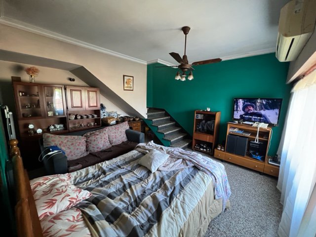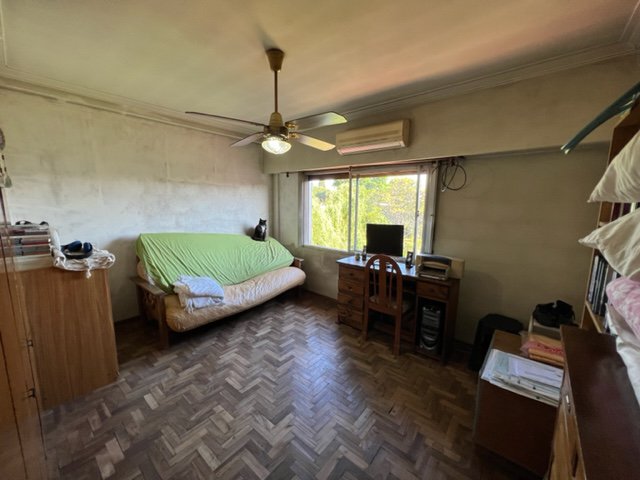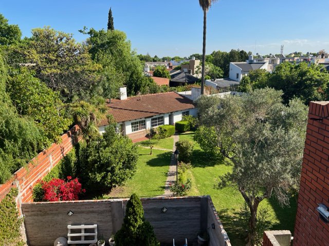 El acceso a esta propiedad es por un portón. Al ingresar, hay un amplio parque al fondo con una hermosa arboleda, posee además un quincho con baño y un galpón. Luego, la casa se ubica en un primer y segundo piso, los cuales tienen acceso por escalera. La primer planta, cuenta con cocina, baño y un dormitorio. Y la segunda planta posee 2 dormitorios más, uno con balcón con vista al parque.