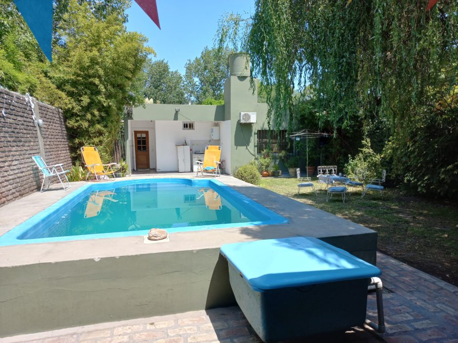 Tiene 3 dormitorios, 2 baños, living comedor, cocina y en la parte de atras pileta, parrilla y un quincho.